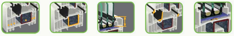Vertieftes System mit 83 mm Bautiefe und mit Sechs-Kammer-Ausbildung bietet idealen Schutz vor Kälte und Lärm. Außerdem sorgt die Bautiefe von 83 mm für eine erhöhte Eckfestigkeit und damit für mehr Stabilität im Fenster. Die große Stahlaussteifung sichert zudem eine hohe Profilstabilität und stabile Beschlagsverschraubungen, was auch ein wichtiger Faktor gegen Einbrüche ist.