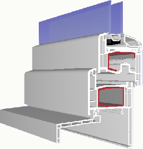 • sehr gute Stabilität durch große Stahlaussteifungen in Blendrahmen und Flügel ermöglicht Einbauen von großen Elementen